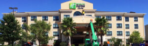 The photo example pictured above is the Holiday Inn Express West of San Antonio. Initially the owner wasn’t aware they had any significant hail damage. We uncovered that they had several hundred thousand dollars in damages, including three different types of roofing: shingles, standing seam radius panels and modified bitumen.