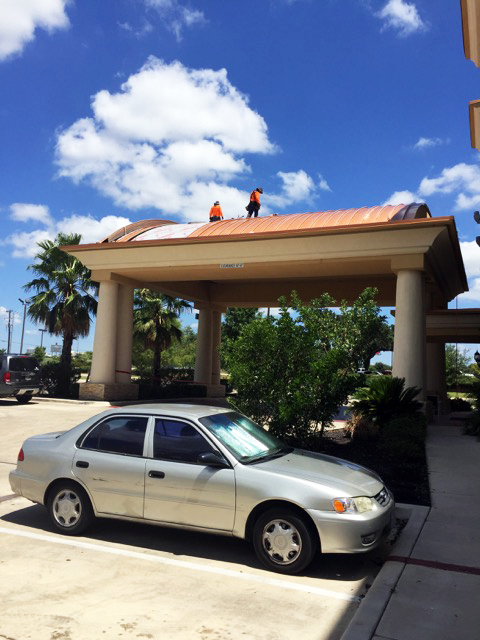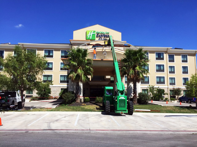 The photo example on this page is the Holiday Inn Express West of San Antonio. Initially the owner wasn’t aware they had any significant hail damage. We uncovered that they had several hundred thousand dollars in damages, including three different types roofing (shingles, standing seam radius panels, modified bitumen), broken windows, damage to rock wall façade, holes in EIFS, broken light fixtures, dented signage, chipped paint, and damage to interior rooms, ceilings, and walls. We handled the entire project from start to finish and the property manager and owner had minimal involvement aside from signing a few papers and approving our work.